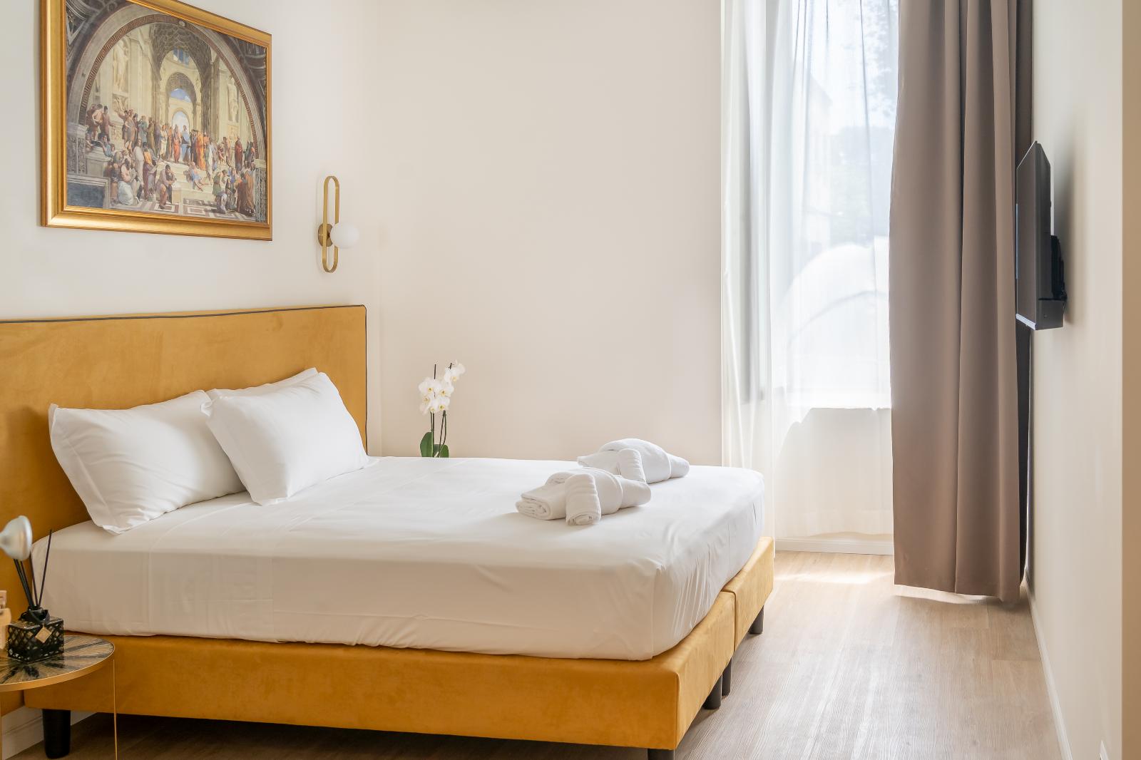 Le nostre camere, ispirate all’arte classica romana, offrono un ambiente raffinato, silenzioso e confortevole per un soggiorno autentico nella città eterna. Ogni stanza è dotata di bagno privato, minibar, macchinetta del caffè, aria condizionata, Wi-Fi veloce e finiture di pregio.